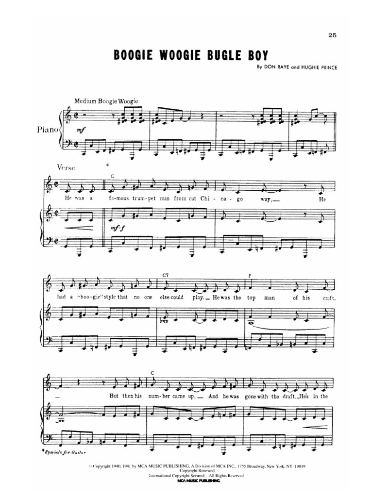 Download or order boogie woogie bugle boy sheet music by various arranged for piano, organ, guitar and more.